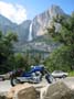 | Beautiful Yosemite Friday Cruised to Yosemite on a Friday to ferry my friend Darrell and his "campers" to their trail head. I jammed out of Modesto on the now familiar CA 132. Blew through La Grange (been there done it) and sped to Coutlerville. Ran down the twisties along the CA 49 till I met back up with CA 120. Did the switchbacks of the "new" grade to the fuel break in Groveland. The long sweeping turns and pristine asphalt along the 120 to the Yosemite gate made for some awesome high speed cruisn'. Once in the park (Federal land) I stayed mostly in the requested speed zone. The slow pace allows for taking in the scenery with out risking life and limb (or stopping). Met D and the Gang at the main store. Parked the Magna at curry and drove the Expedition to Glacier point. The crazy hiker people hopped out (photo). We snapped some Half Dome, Nevada Valls and Vernal Falls. It rained on us for ten minutes. They started walking the long way to Half Dome while I power expeditioned back to CurryV. Me and the Magna did a lap around the valley, photoed Yosemite falls. Was in need of gas. Since the big Y valley no longer has a fuel stop, I headed back up the CA 120 to Crane Flat for gas. Then I flew up towards Tuolomne Meadows. Damn it's beautiful up there in Y. About 6:30 started back down the hill, using 120 all the way back to Modesto. Honked at the Honda Sport Touring Club gathered in Hogdon Meadows hotel parking loot. They waved. Nice trip. Think I'll do Y again this summer. | |